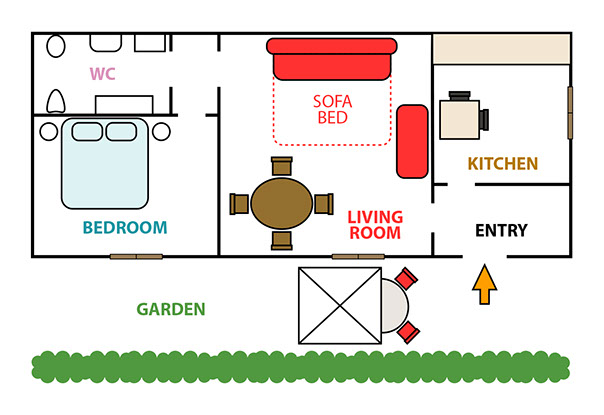 Il trilocale di circa 70 mq è posizionato al piano rialzato di un fabbricato rurale con ingresso indipendente e ampi spazi esterni ed è così composto: Ingresso, cucina abitabile-living con tavolo da pranzo e divano trasformabile in 2 posti letto, camera da letto matrimoniale, bagno con cabina doccia. Dispone in totale di n.4 posti letto ed è dotato di: aria condizionata, riscaldamento, ampio parcheggio, frigo, forno, cucina a gas, piatti, stoviglie, pentole, tovaglie, biancheria, tv, asciugacapelli, ferro da stiro e lavatrice.
