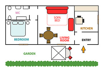 Il trilocale di circa 70 mq è posizionato al piano rialzato di un fabbricato rurale con ingresso indipendente e ampi spazi esterni ed è così composto: Ingresso, cucina abitabile-living con tavolo da pranzo e divano trasformabile in 2 posti letto, camera da letto matrimoniale, bagno con cabina doccia. Dispone in totale di n.4 posti letto ed è dotato di: aria condizionata, riscaldamento, ampio parcheggio, frigo, forno, cucina a gas, piatti, stoviglie, pentole, tovaglie, biancheria, tv, asciugacapelli, ferro da stiro e lavatrice.